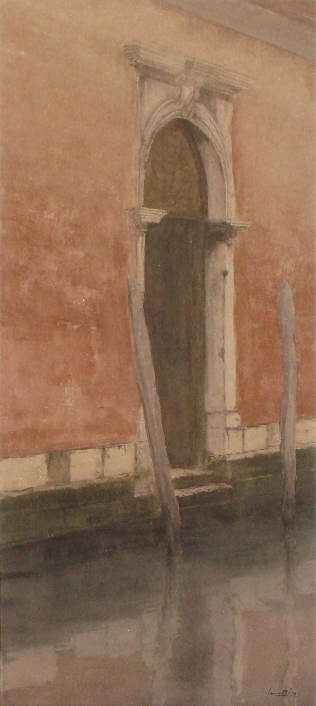 Una acuarela con color hecho aire y agua, hecho humo y aliento, hecho recuerdo y ausencia. Díaz descubre el color del frío, el color de la tierra seca de la Mancha, el color del agua que pinta en su quietud las fachadas de la Venecia que muere. El color de la elegía y del abandono… el color del amanecer o el del atardecer…en primavera o en invierno, helándose a la intemperie en la magia del aire de su agua…Todo ello conviene a sus temáticas, en las que el paisaje se convierte en protagonista sustancial, aunque la sustancia del motivo a través de sus pinceles es precisamente en reducir el argumento a ese pálpito de cuanto es evocación y misterio hecho color en el aire. Atmosfera pura del frío en sus montañas pintadas de nieve…calor tibio en sus playas solitarias en las que el mar azul besa con labios rosas el horizonte del atardecer…Grises indefinibles en el atardecer sin mañana de la Venecia que muere en la propia decadencia trágica de su galante historia…Arenas que se hunden bajo los pies en las playas desnudas…
